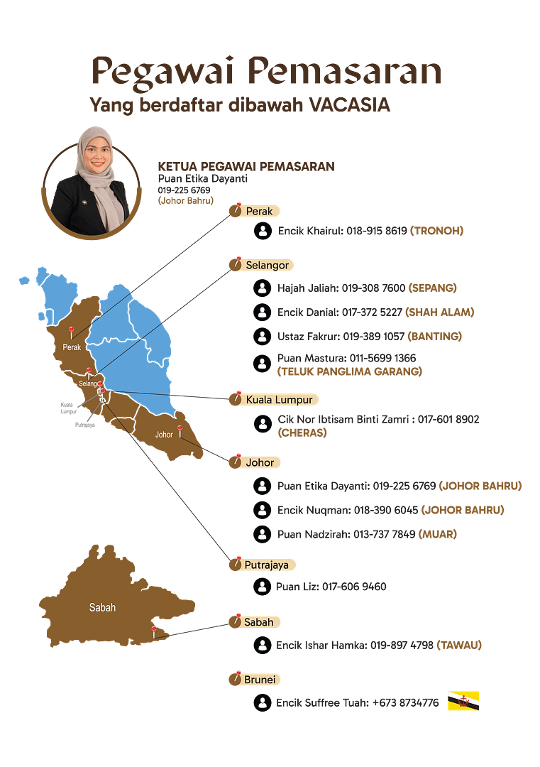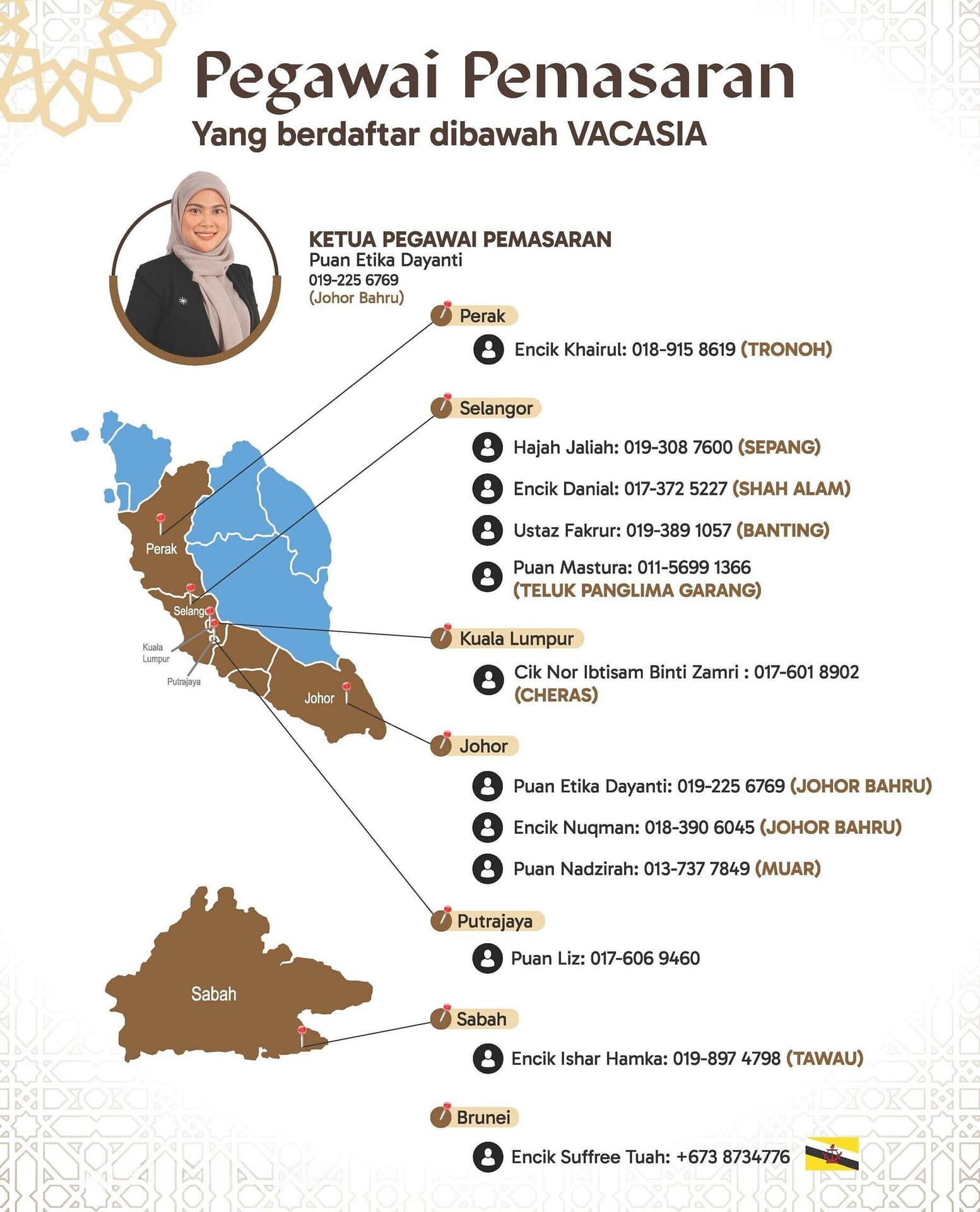 Ditubuhkan pada tahun 2017, Vacasia Tours & Travels Sdn. Bhd. komited untuk menyediakan pengalaman pelancongan yang tidak dapat dilupakan, dengan fokus utama kepada perjalanan ibadah ke Tanah Suci. Dengan bimbingan pasukan pengurusan baharu sejak tahun 2023, Vacasia terus meluaskan jangkauan dengan menawarkan pakej yang dirangka khas bagi memenuhi keperluan setiap jemaah. Kerjasama kami dengan Andalusia Travels & Tours Sdn. Bhd. turut memperkukuh keupayaan kami dalam memberikan perkhidmatan yang cemerlang, menggabungkan lebih sedekad pengalaman dengan visi baharu ke arah pertumbuhan yang lebih mantap.